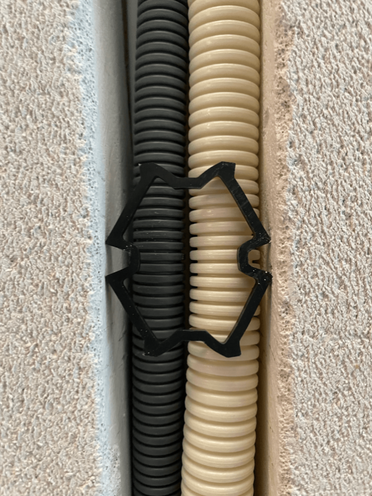 DUO CLIPS soveltuu kaapeleiden, johtojen, letkujen ja putkien kiinnitykseen seinäuriin leveydeltään 22–50 mm. Kiinnike käännetään kapeille tai leveille urille sopivaksi ja painetaan helposti paikalleen kärkipihdeillä. Lopputuloksena on tukeva, turvallinen ja siisti asennus, valmis tasoitettavaksi.